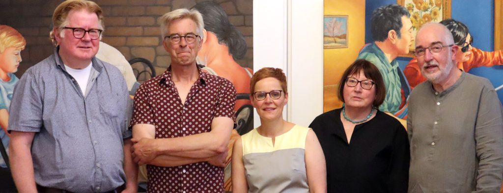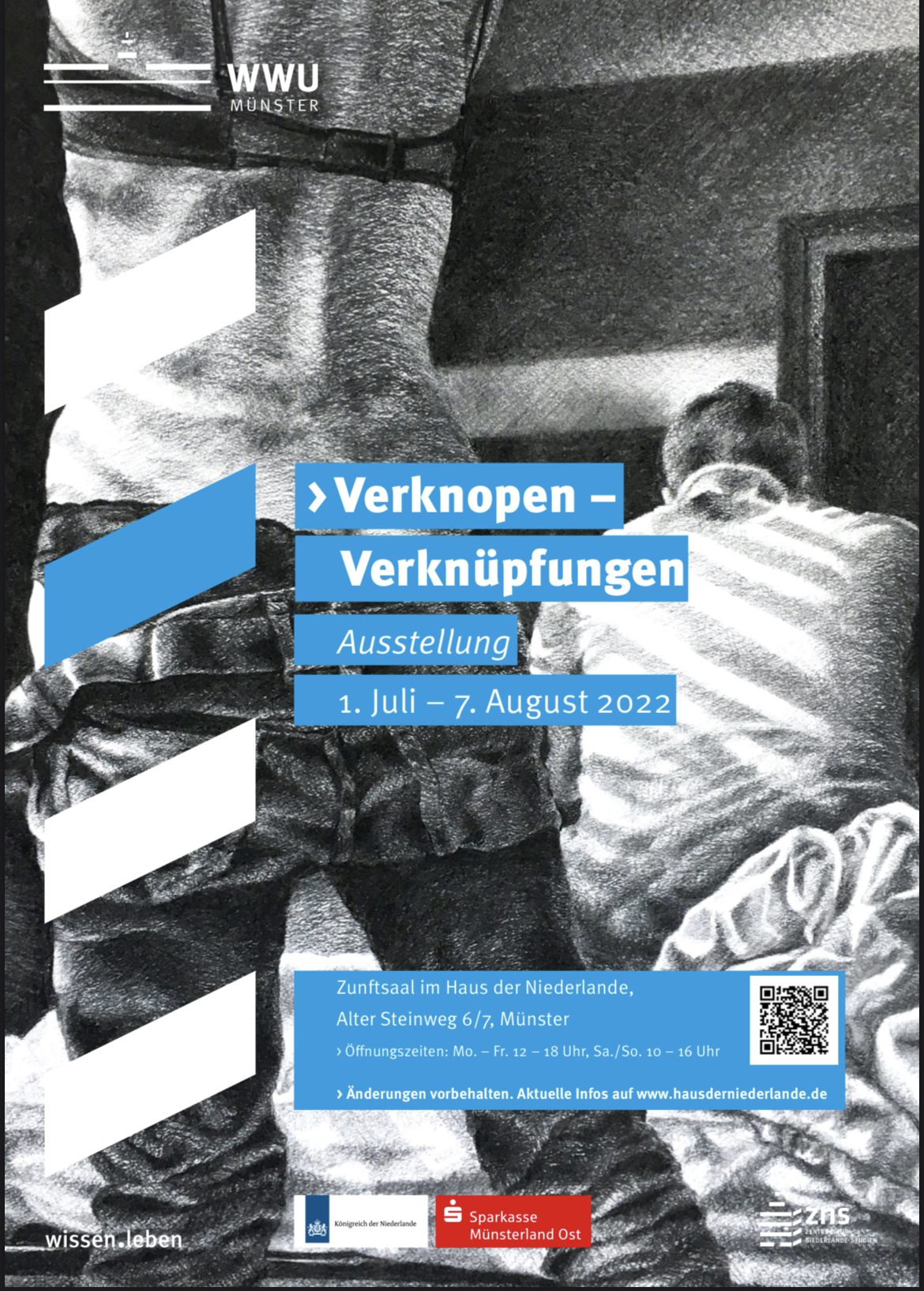 Zentral in Münster im ‘Haus der Niederlande’ zeigen Elke Demter und Michael Kestner aus unserem Künstlerhaus mit Petra Gillhaus (Vereinsmitglied), Peter Schipper und Chris Rodenburg aus dem gleichnamigen holländischen Soest ihre Arbeiten in der Ausstellung „Verknüpfungen / Verknopingen“.